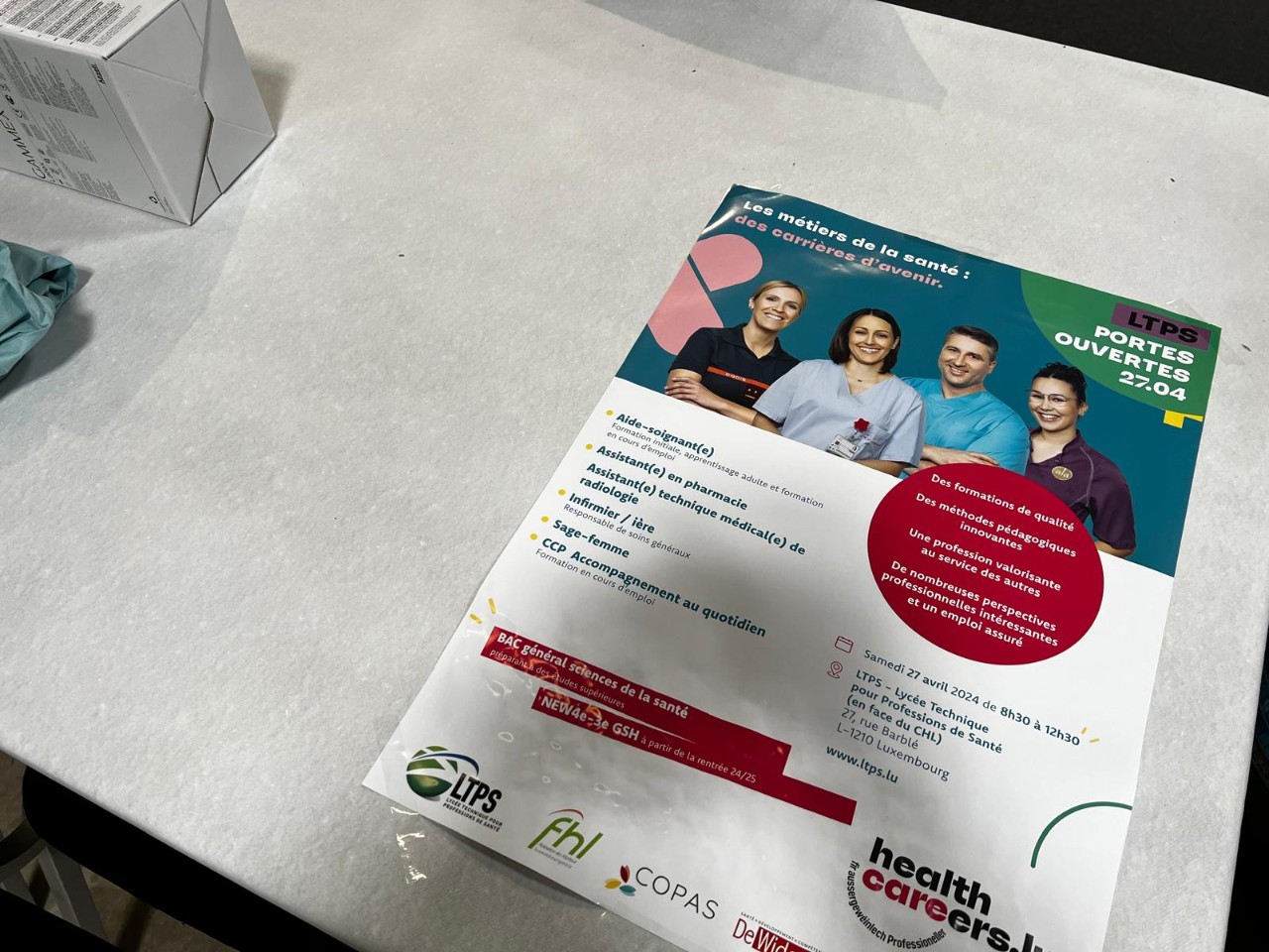 Op der leschter Editioun vun der ,,Yep!-Schoulfoire'', déi vum 21. bis den 23. Abrëll 2024 an der LuxexpoTheBox stattfonnt huet, hunn de Ministère fir Gesondheet a sozial Sécherheet, de Lycée Technique pour Professions de Santé (LTPS), DeWidong, d'Fédération des hôpitaux luxembourgeois (FHL), an d'COPAS, de gemeinsame Stand „Healthcareers.lu“ animéiert. Dëse Stand huet verschidden Atelieren an Animatioune fir déi Jonk ugebueden dorënner den Atelier Reanimatioun, den Atelier Verband, de Virtual Reality Atelier, ewéi och e Quiz iwwer d'Gesondheetsberuffer an Presentatiounen iwwer Beruffer am Spidols- an am Hëllefs- a Fleegesecteur.
