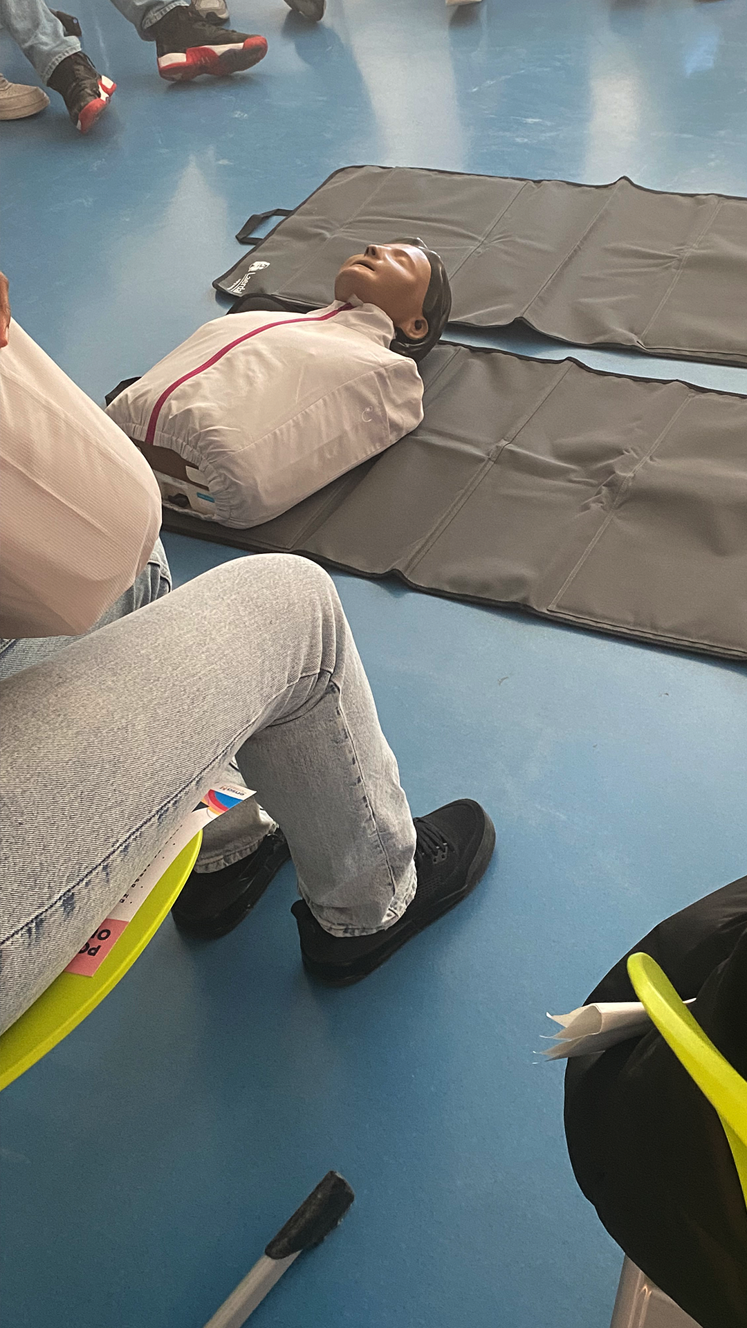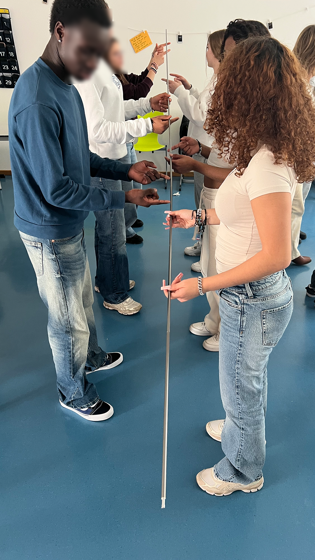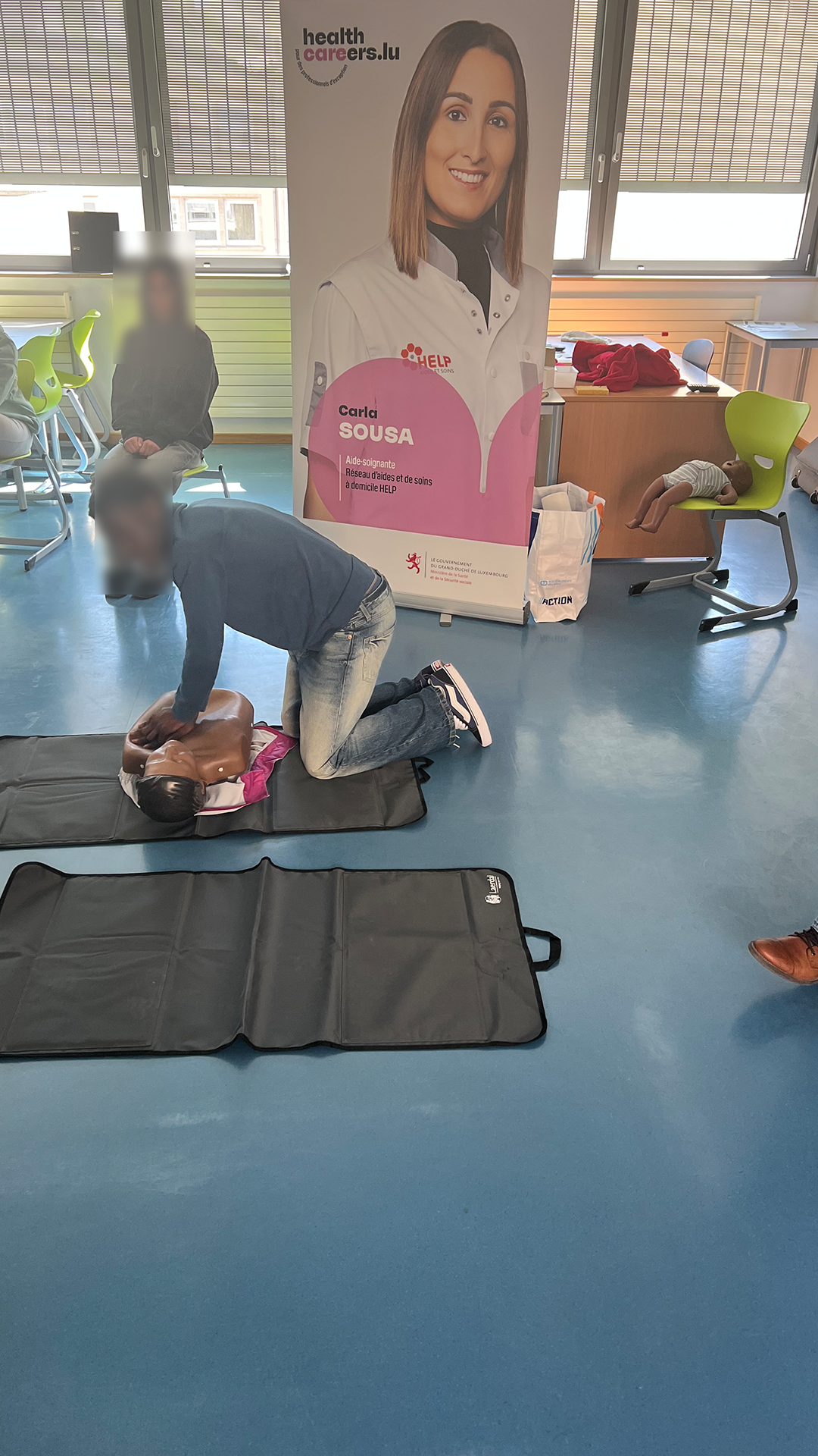 Den zweeten Atelier war iwwer CRM (Crew Resource Management), wou d’Schüler Team-Building-Übunge gemaach hunn, fir hir Zesummenaarbecht ze stäerken, eng essenziell Fäegkeet am Gesondheetssecteur.