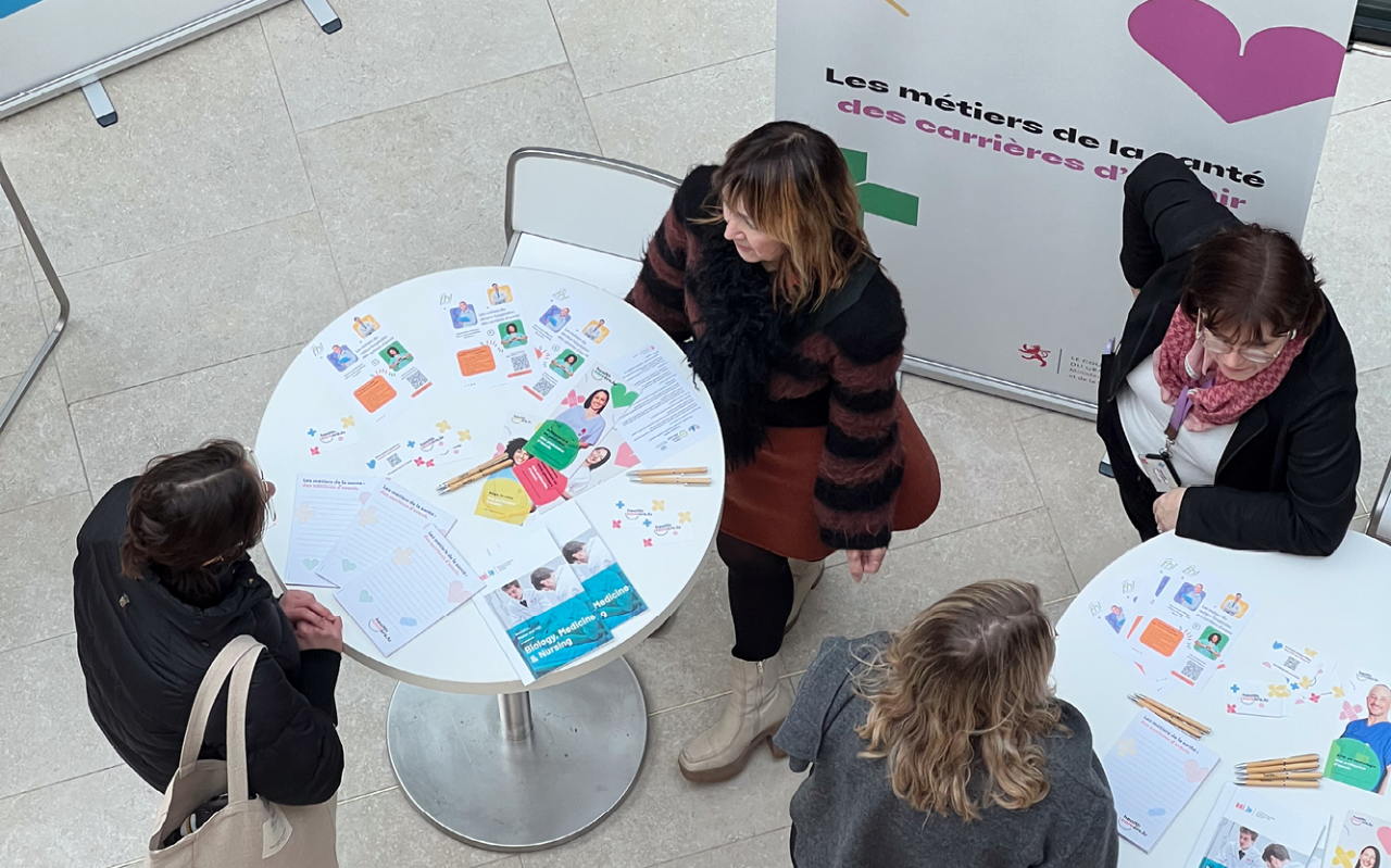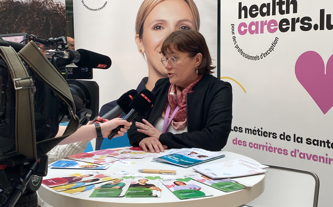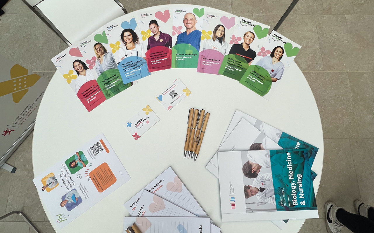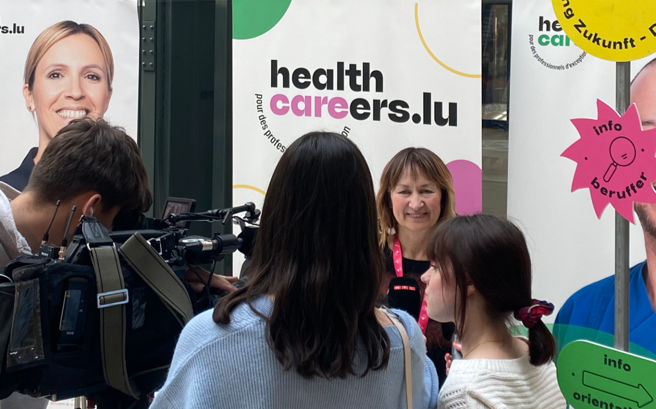 De ganzen Dag iwwer, hat d’Ekipp vun Healthcareers.lu, mat der Ënnerstëtzung vun der UNI.lu, d’Geleeënheet mat jonke Leit déi sech fir Gesondheetsberuffer begeeschteren, interessant Gespréicher ze féieren an op hir Froen anzegoen.
