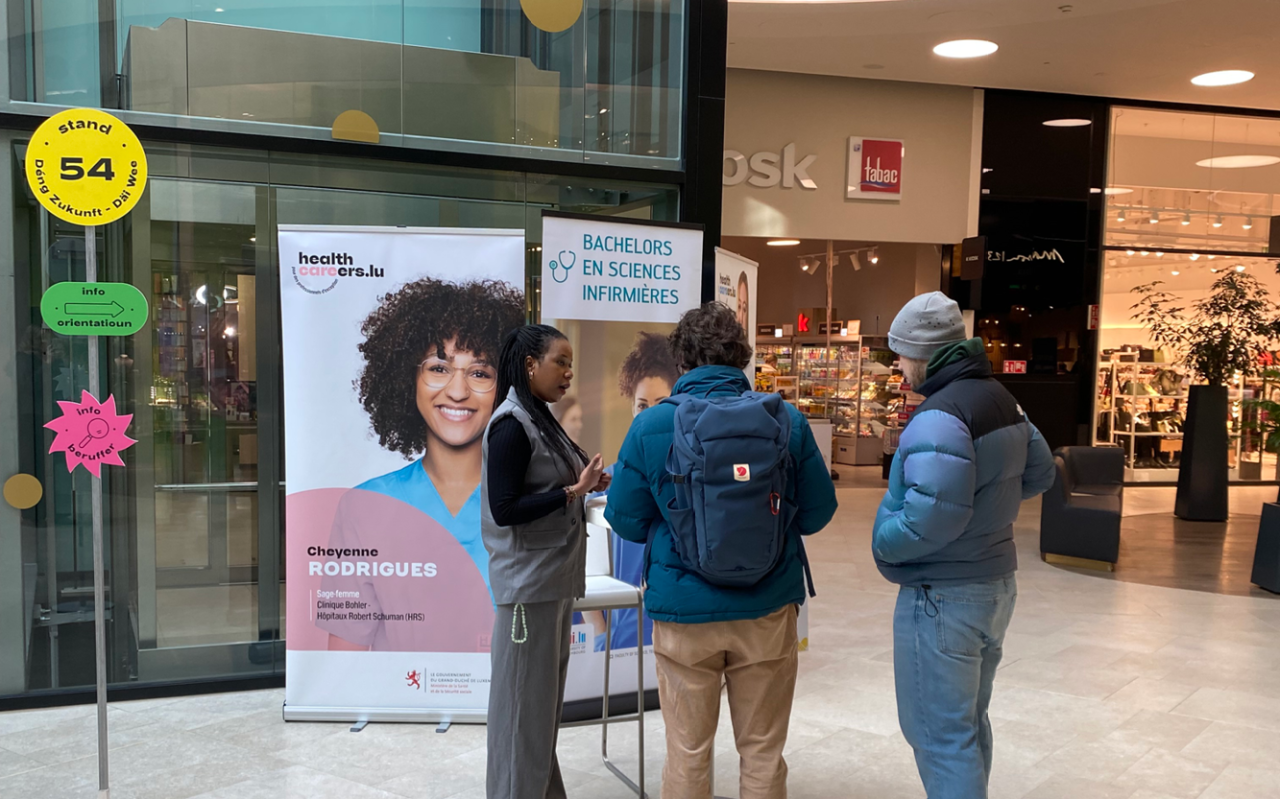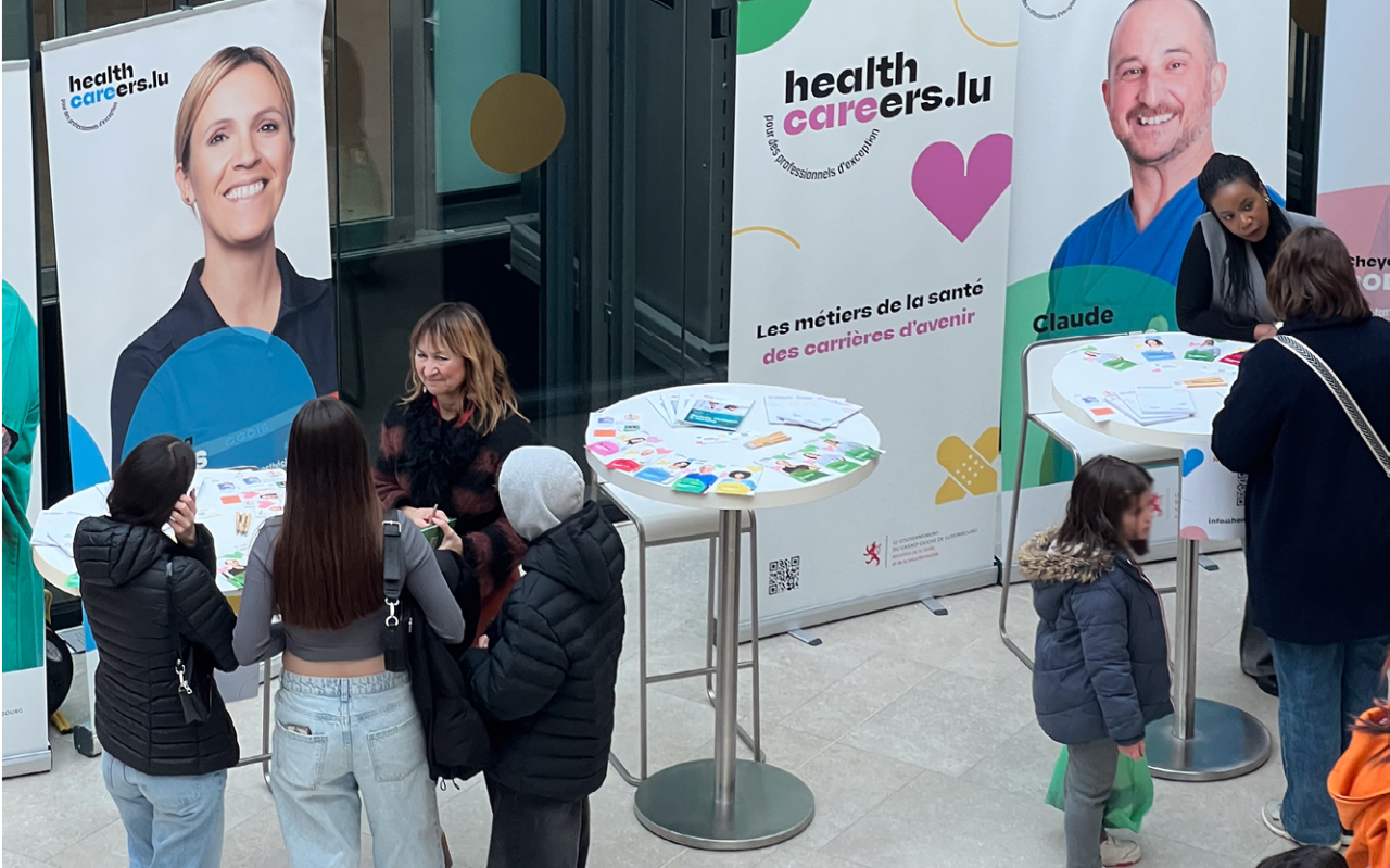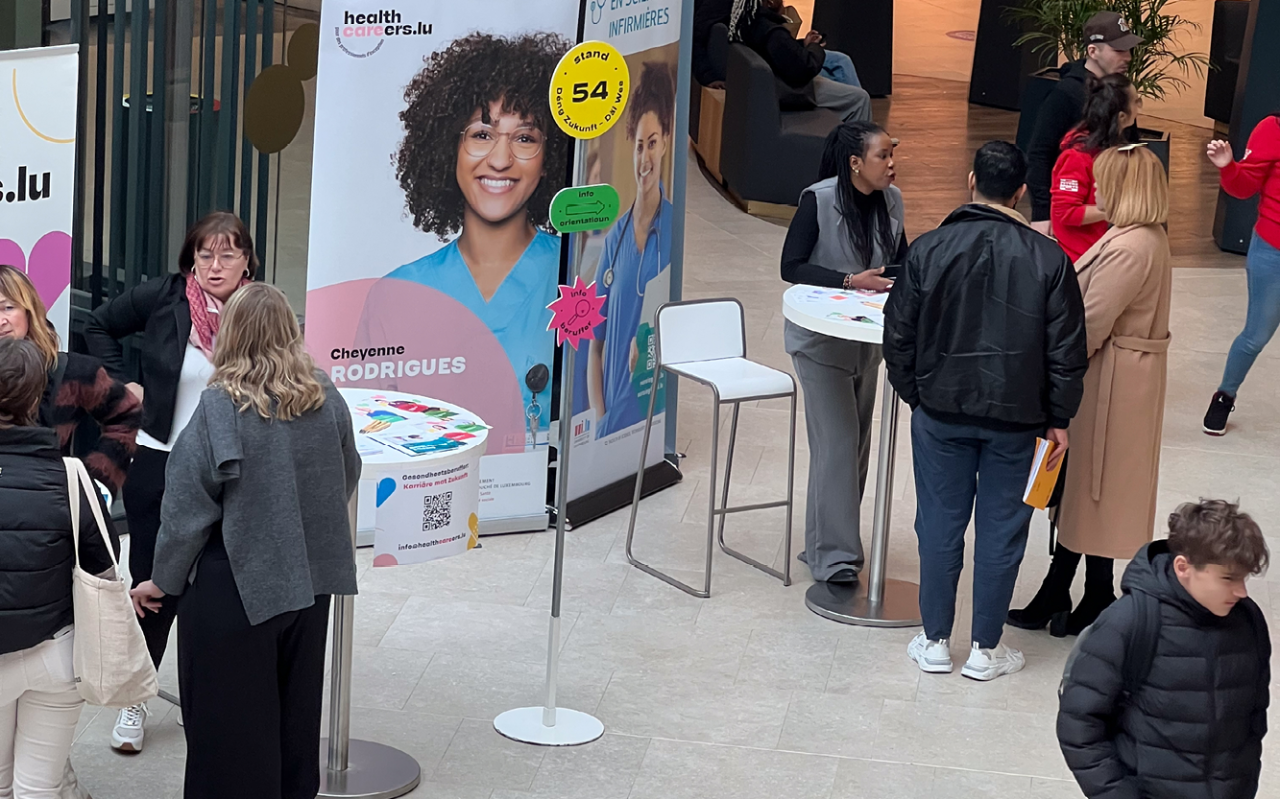 D’Campagne Healthcareers.lu war fir d'éischte Kéier op der Foire Deng Zukunft, Däi Wee dobäi. Dës Foire, organiséiert vum Service national de la jeunesse (SNJ) a vum Jugendinfopunkt Esch (JIP), huet den 19. Februar am Shoppingzenter op der Cloche d’Or stattfonnt.