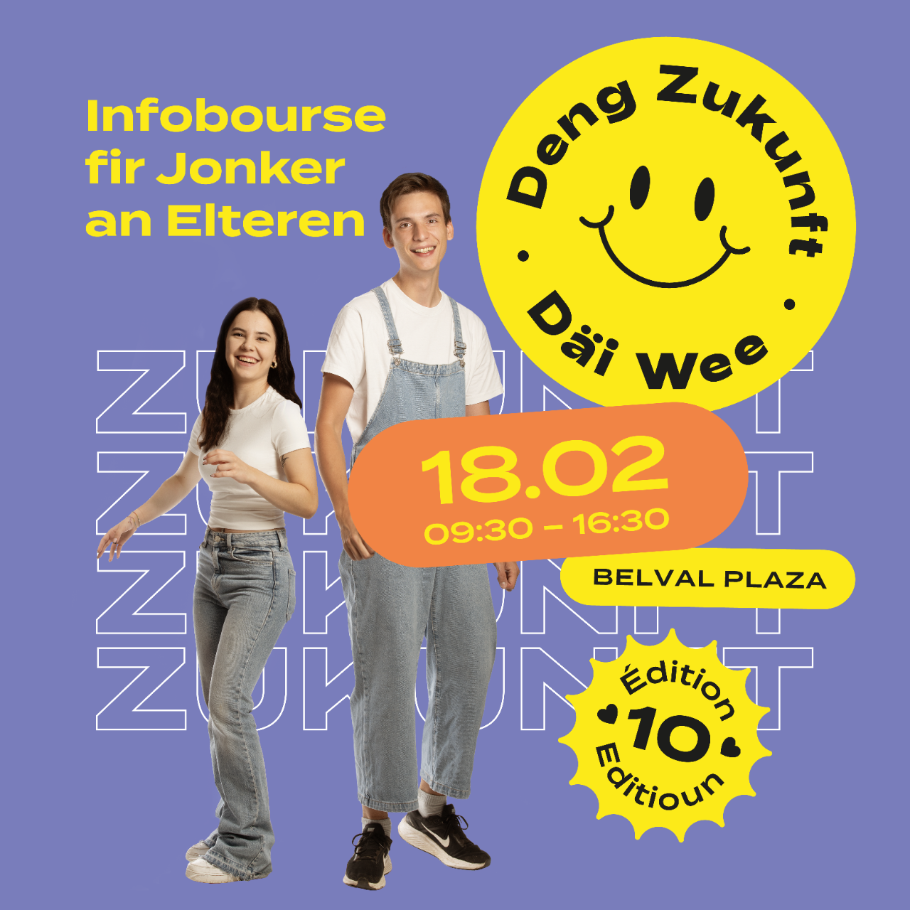 Healthcareers ass op da "Foire Deng Zukunft - Däi Wee", den 18.02.2026 am Belval Plaza vun 09:30 bis 16:30.